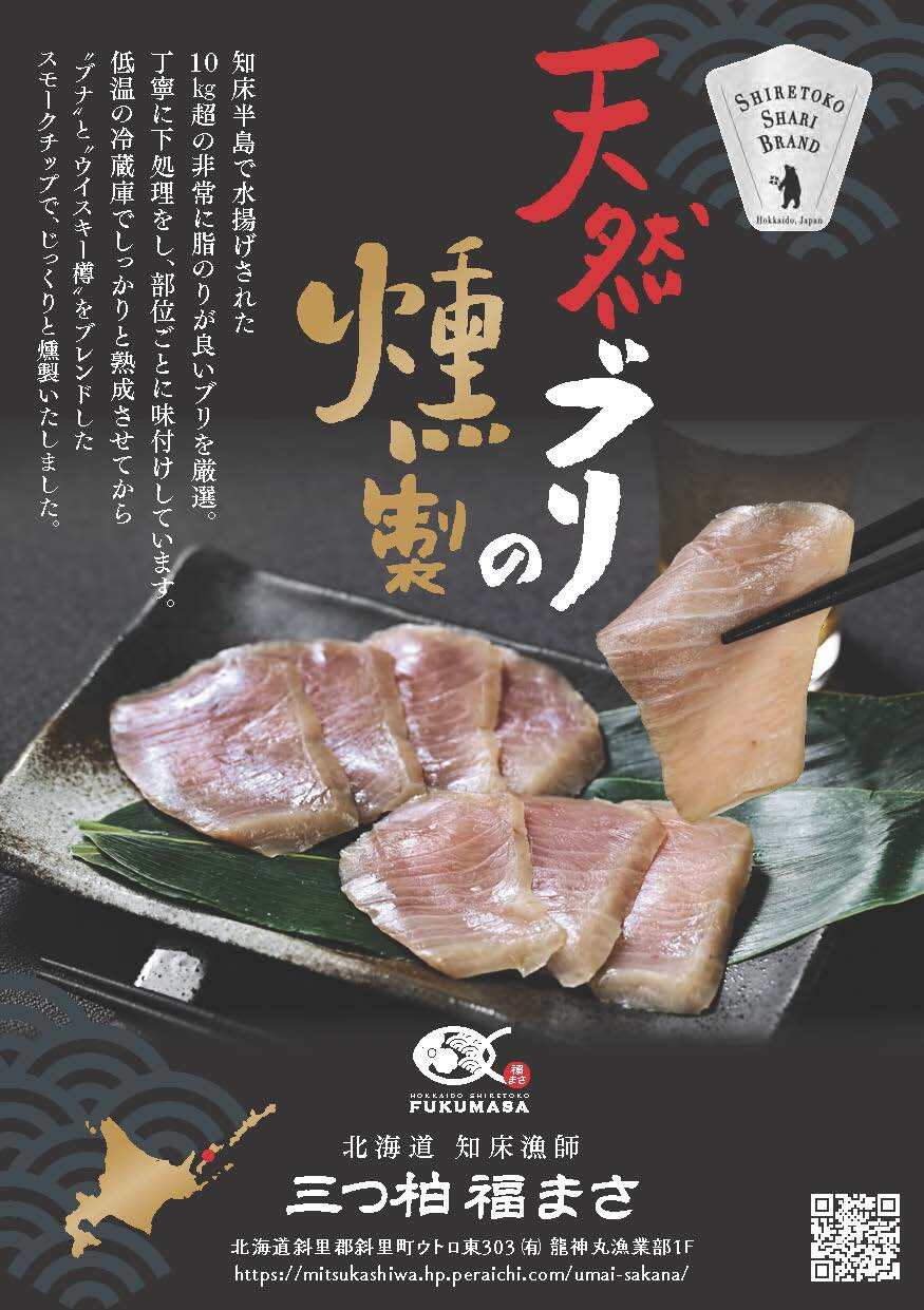【フードプロフェショナルアワード2025 3つ星受賞】【知床しゃりブランド認定品】天然ブリの燻製